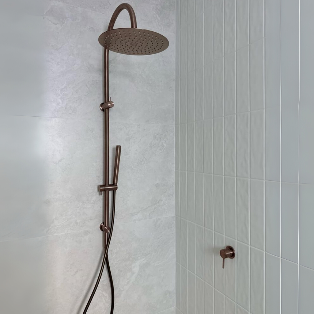 Buitendoucheset Capri – Met mengkraan – Regendouche & Staafhanddouche - Brushed bronze