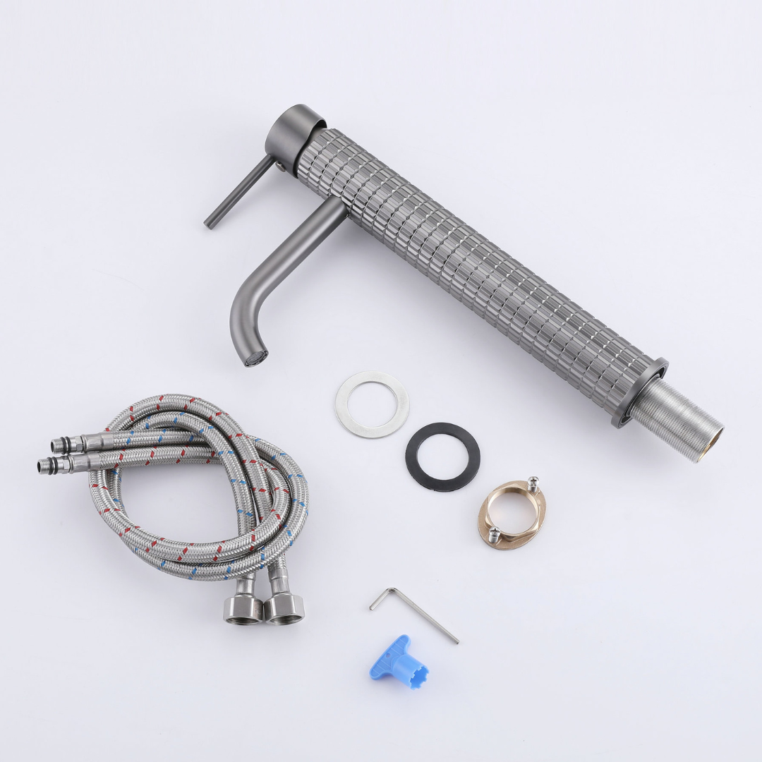 Elke kraan is zorgvuldig ontworpen om zowel esthetisch als praktisch te zijn: van soepele bediening tot een betrouwbare waterdoorstroming, perfect voor dagelijks gebruik. Gemaakt van duurzame materialen zoals messing en roestvrij staal, garandeert de hoge wastafelkraan een lange levensduur en een blijvend elegante uitstraling.