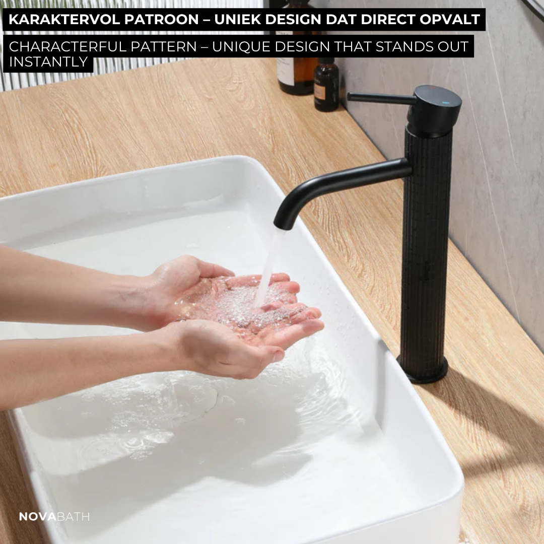 Met de hoge wastafelkraan van NovaBath transformeer je je dagelijkse handelingen in de badkamer naar een luxe ervaring – stijlvol, praktisch en duurzaam.