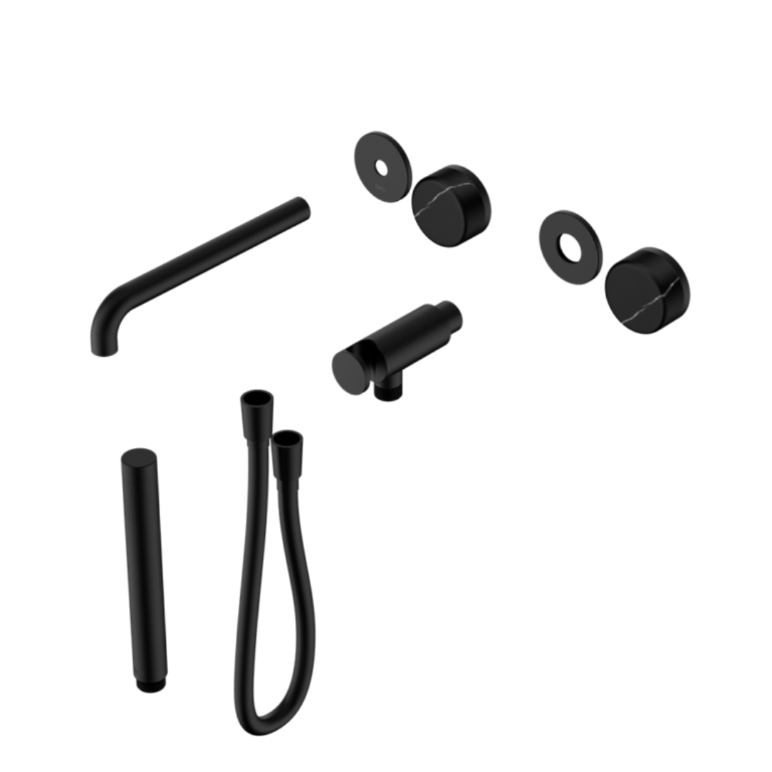 Inbouw badmengkraan Sorrento - Marquina Black - Staafhanddouche en uitloop - Zonder achterplaat - Matte black
