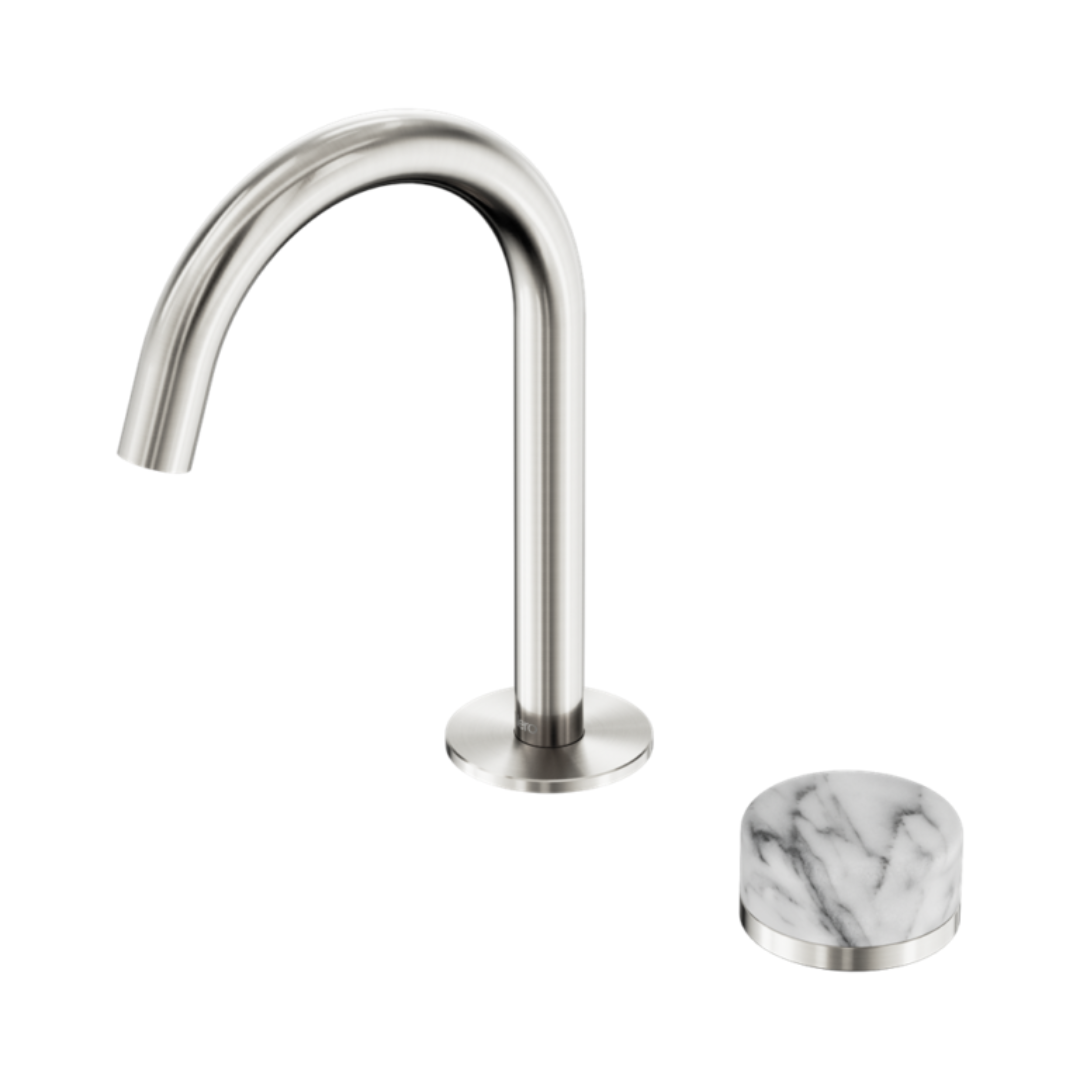 Inbouw Wastafelkraan Sorrento – Arabescato Corchia - 2-Gats - Gebogen (arc) uitloop - Brushed nickel