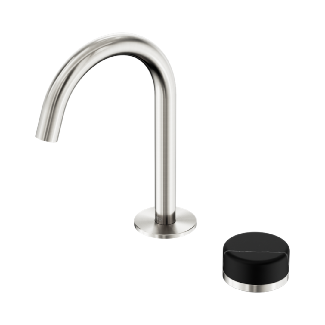 Inbouw Wastafelkraan Sorrento – Marquina Black - 2-Gats - Gebogen (arc) uitloop - Brushed nickel