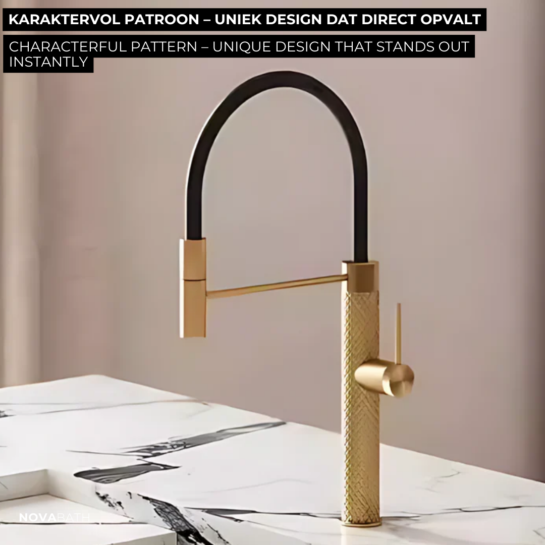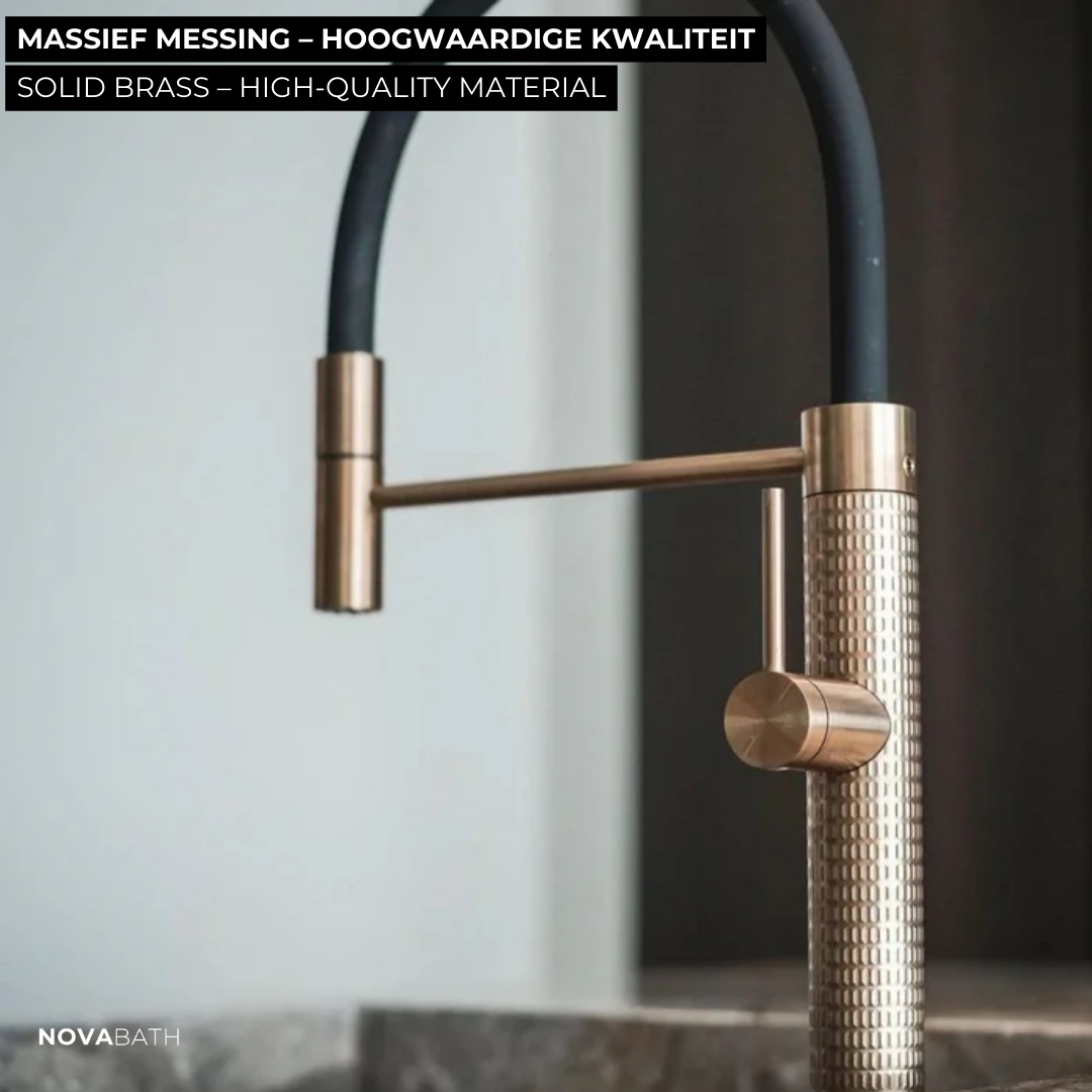 Semi-professionele Keukenkraan Angelica – Uittrekbare Uitloop – Brushed gold