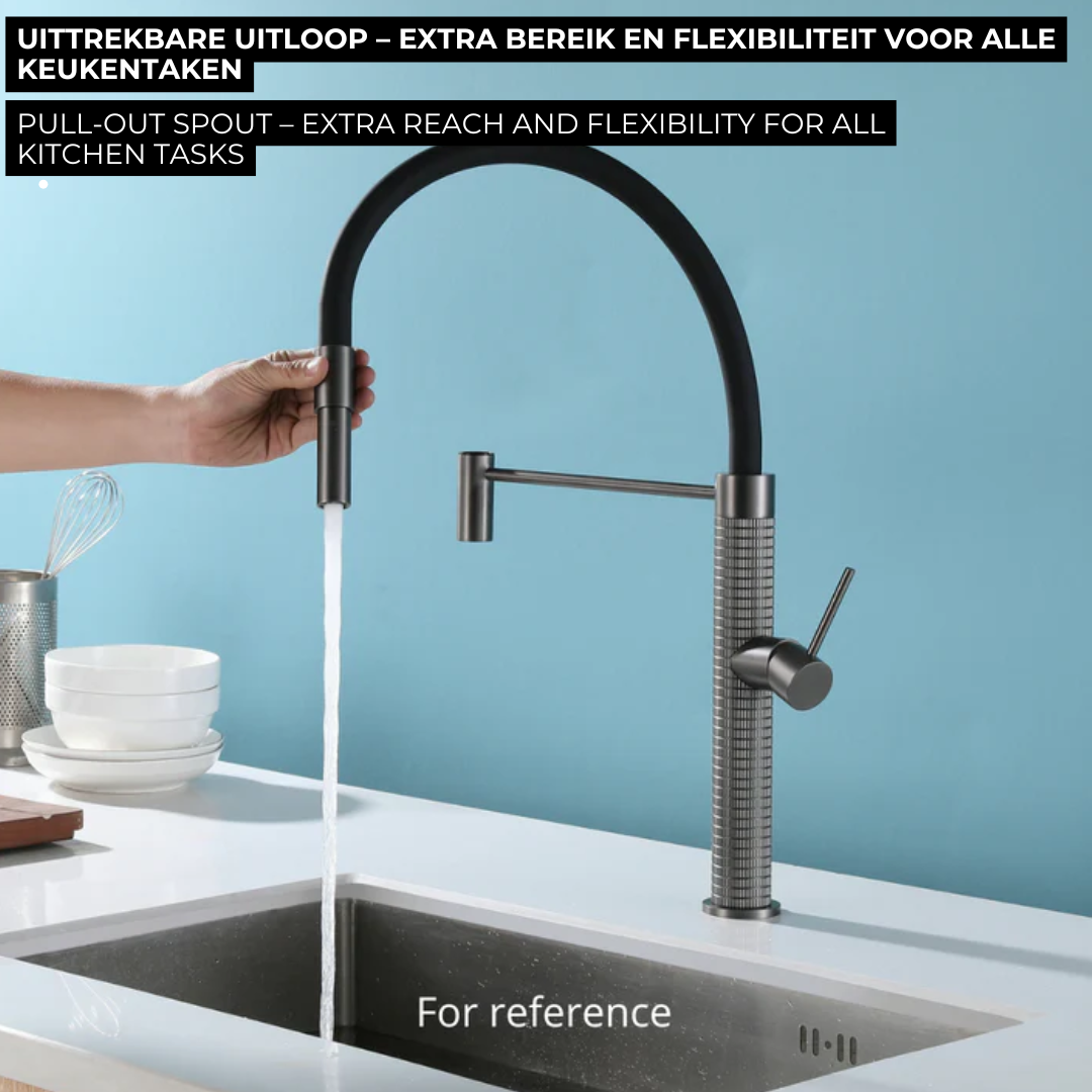 Elke kraan is ontworpen met oog voor detail: van soepele bediening tot een betrouwbare waterdoorstroming, perfect voor dagelijks gebruik in de keuken. Gemaakt van hoogwaardige materialen zoals messing en roestvrij staal, biedt de keukenkraan niet alleen een luxe uitstraling, maar ook duurzaamheid en een lange levensduur.