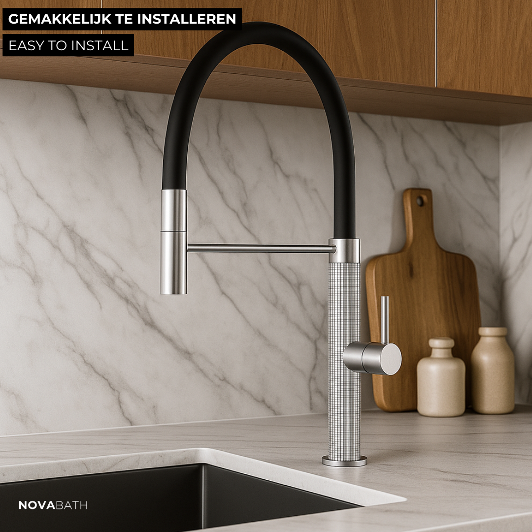 Met de keukenkraan van NovaBath maak je van elke handeling in de keuken een luxe ervaring – stijlvol, gebruiksvriendelijk en duurzaam.