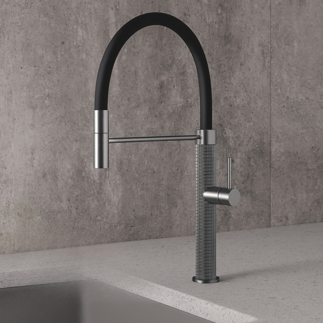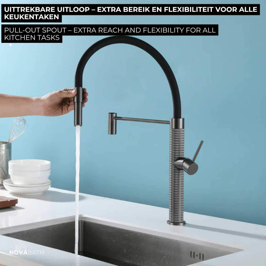 Semi-professionele Keukenkraan Angelica – Uittrekbare Uitloop – Gunmetal Grey