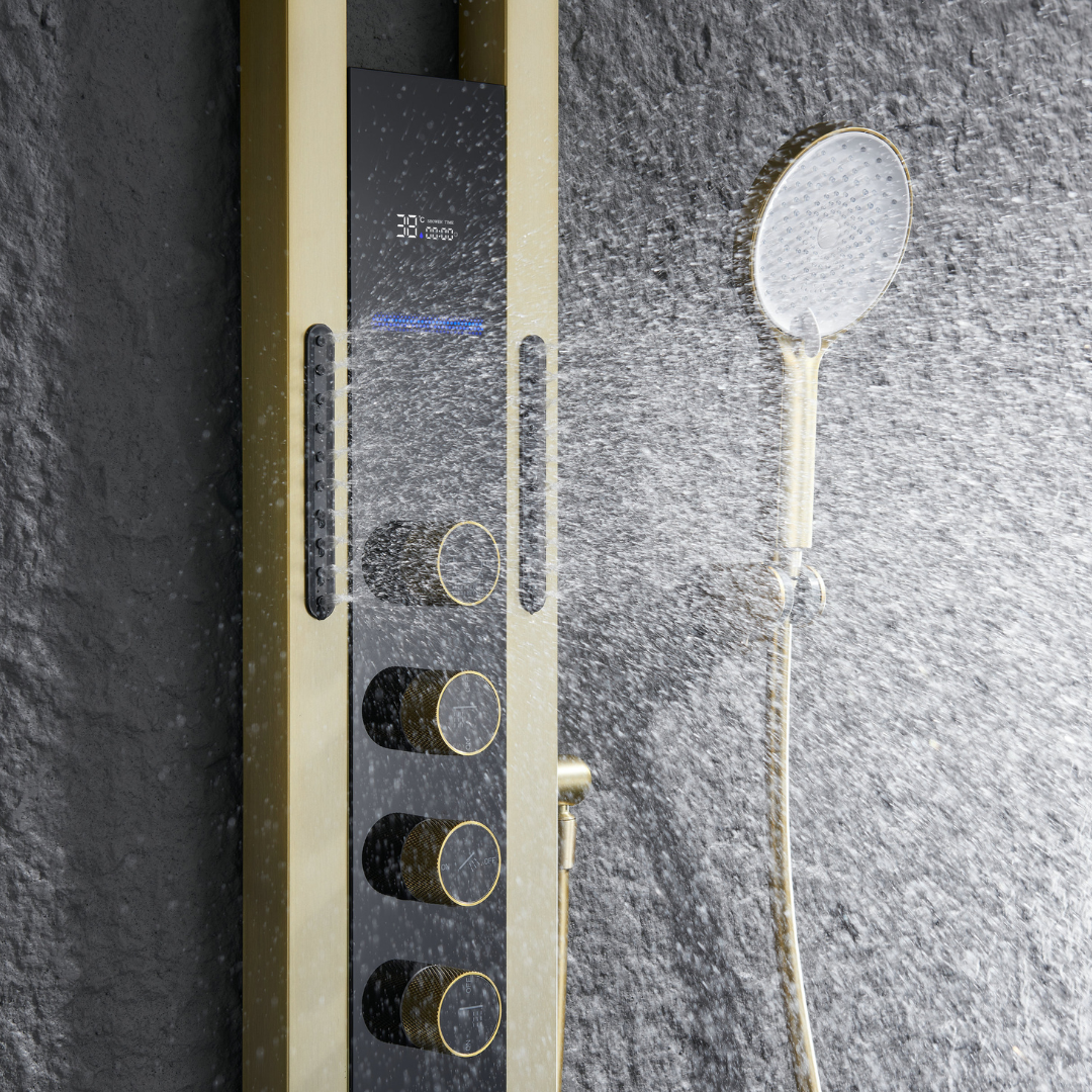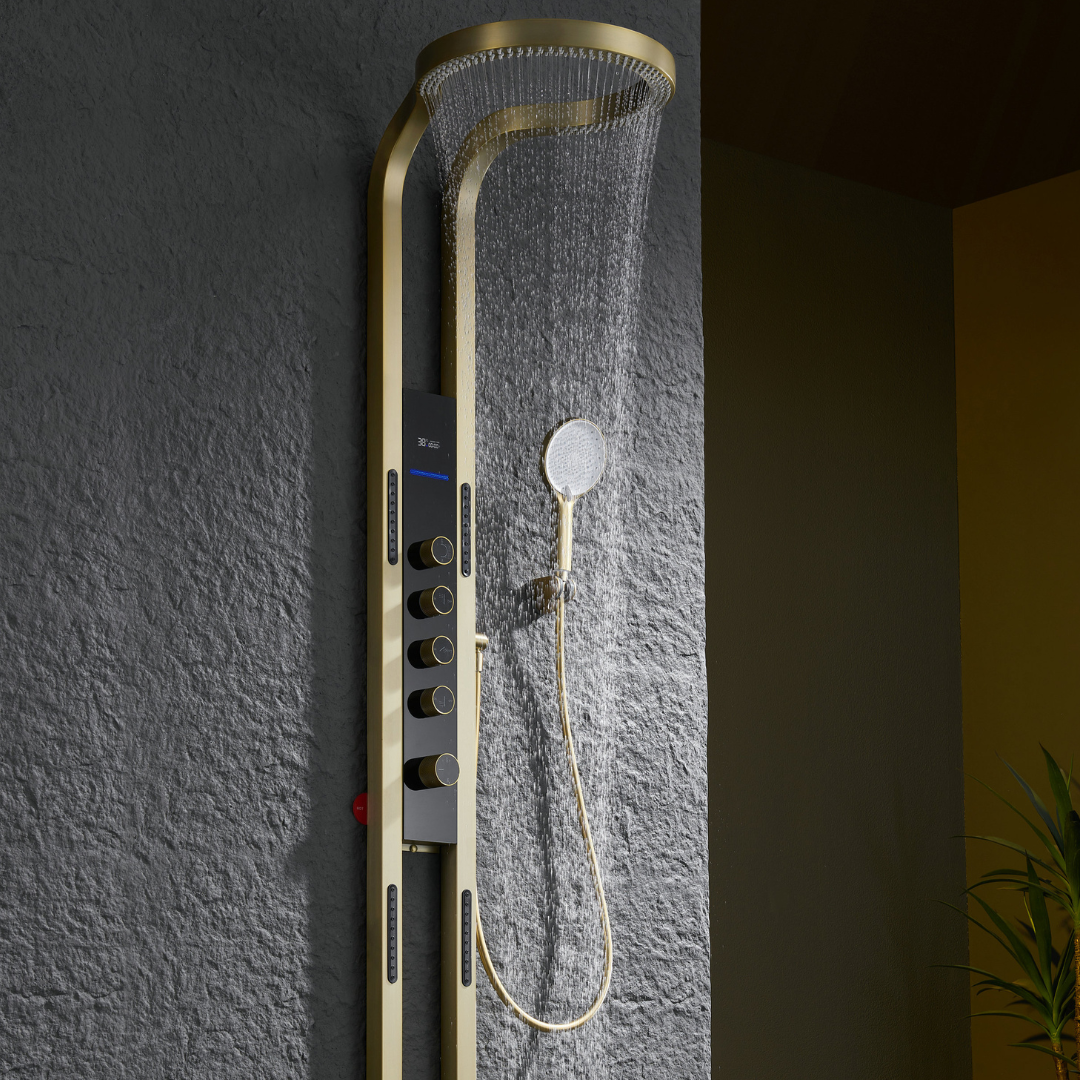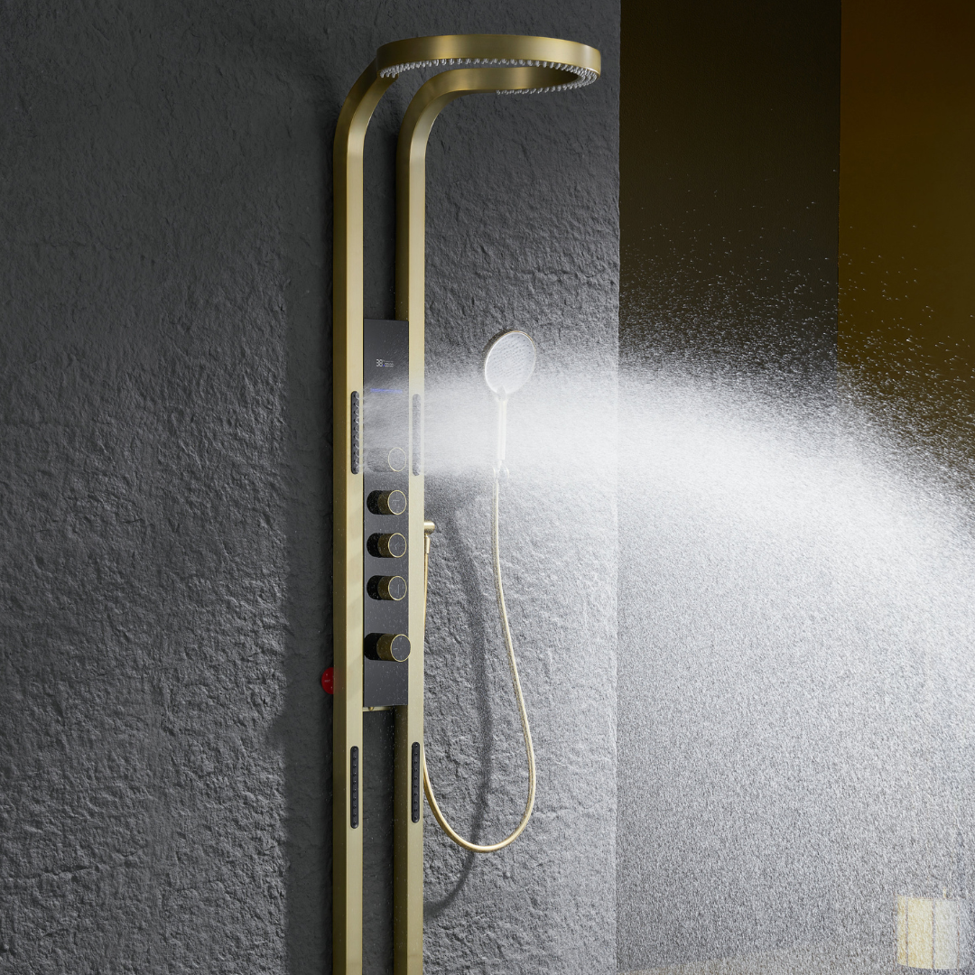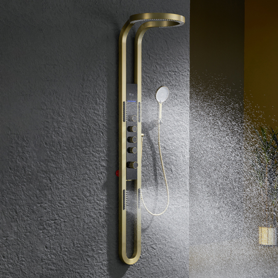 Thermostatisch Douchepaneel Marcelo – Digitale Display - Brushed gold