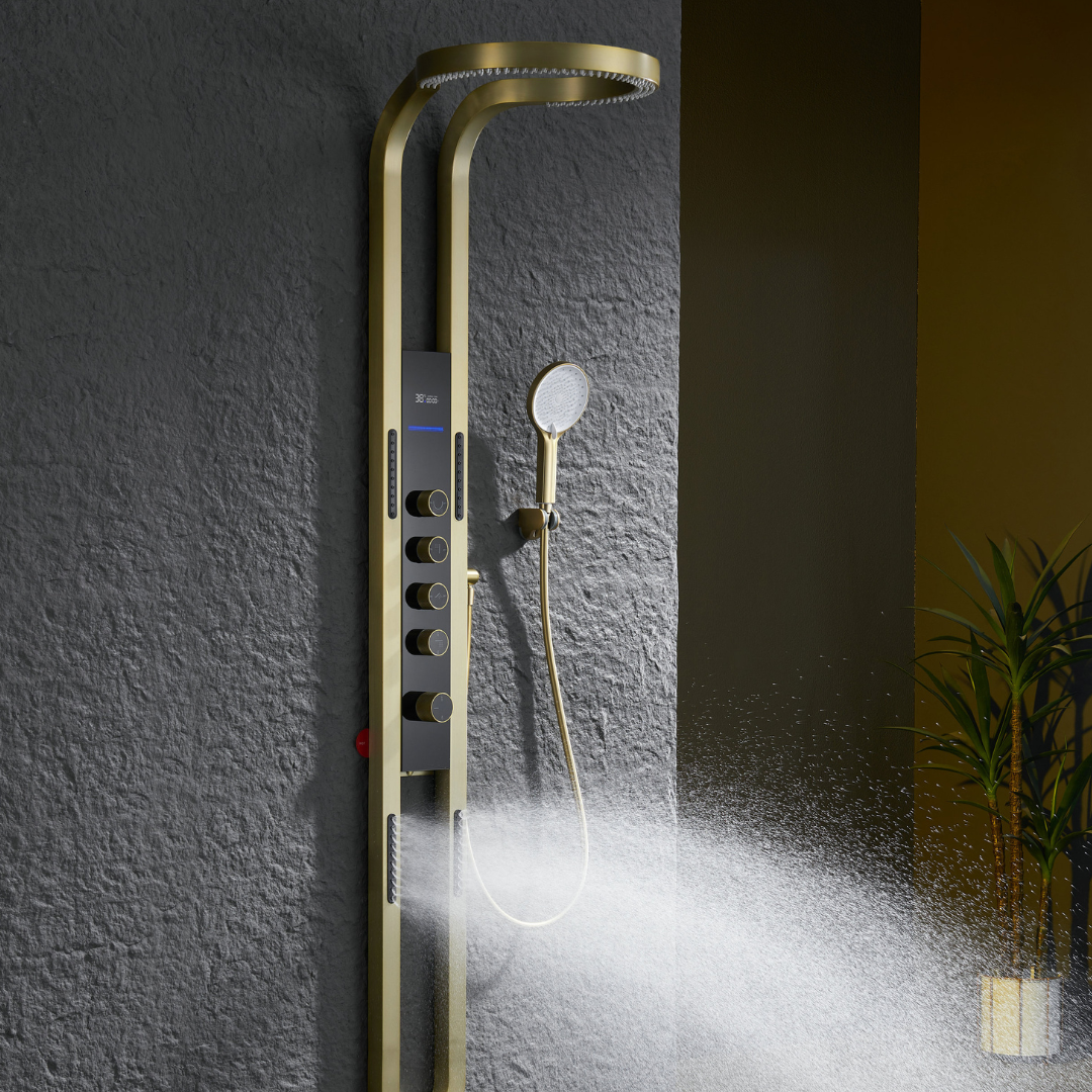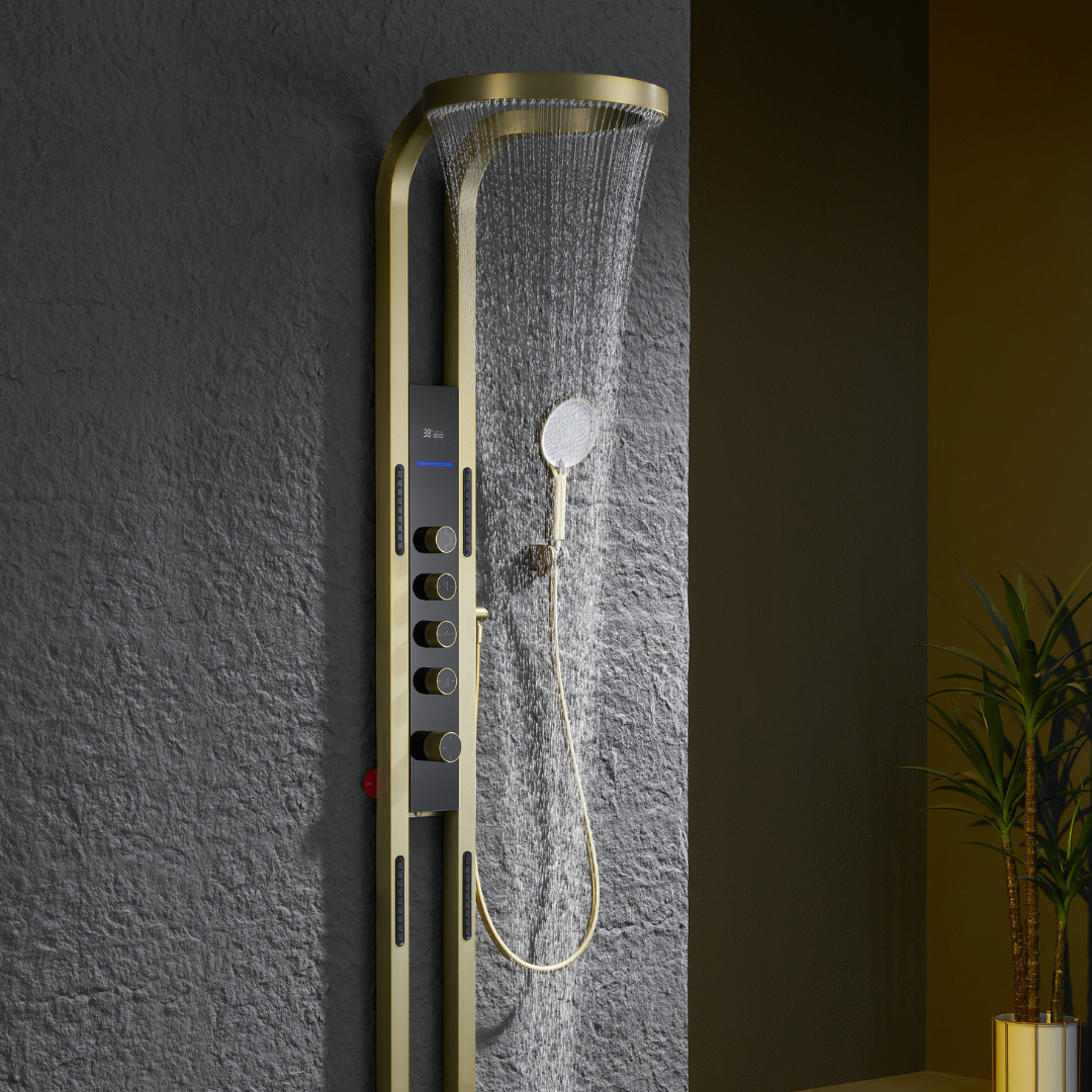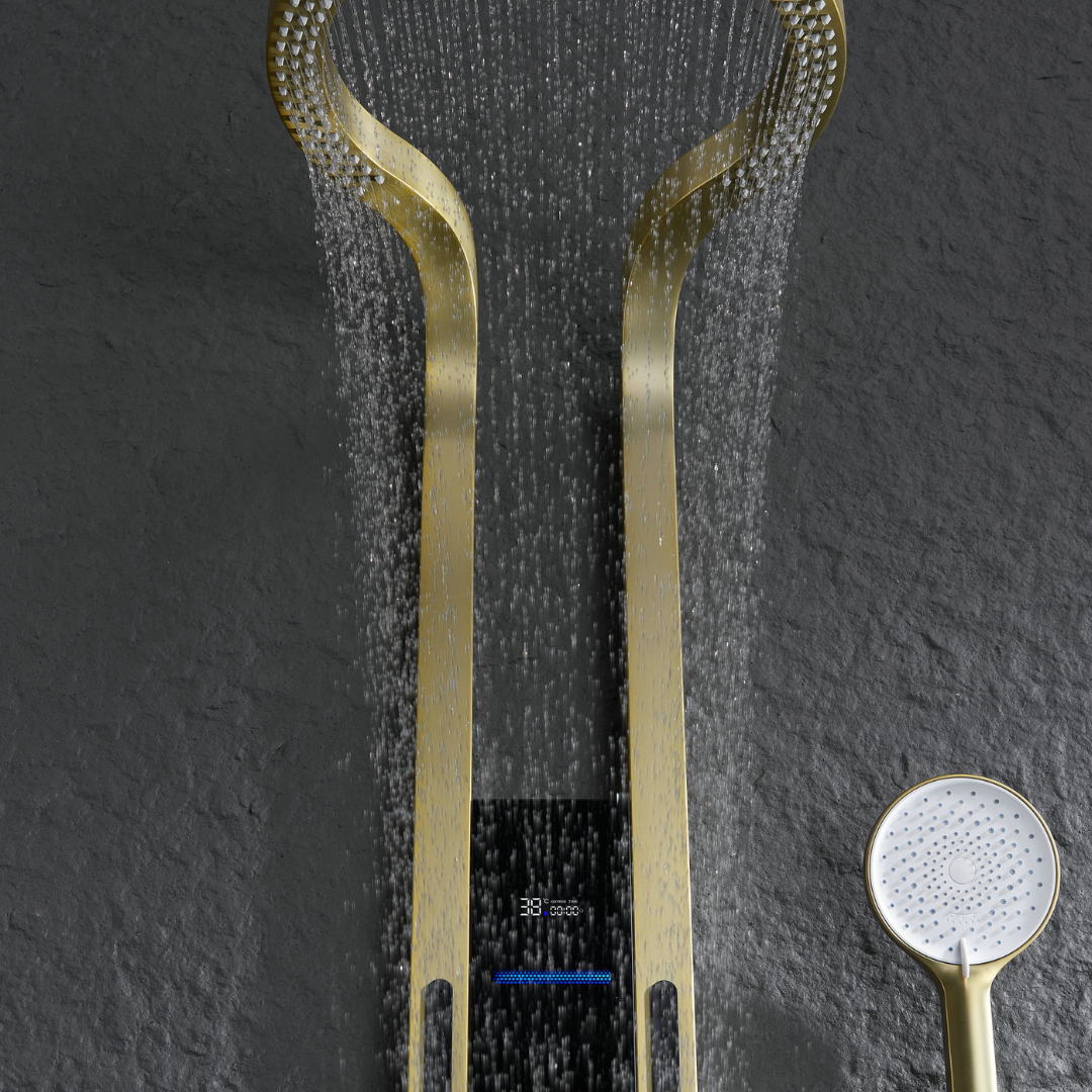 Thermostatisch Douchepaneel Marcelo – Digitale Display - Brushed gold