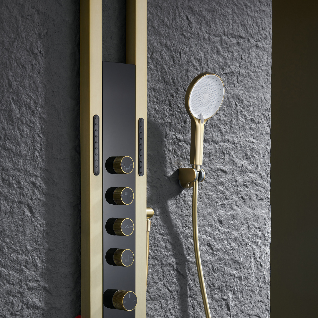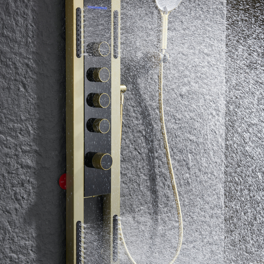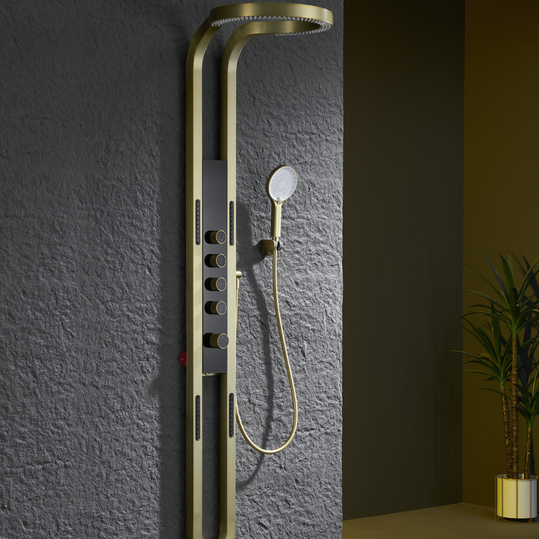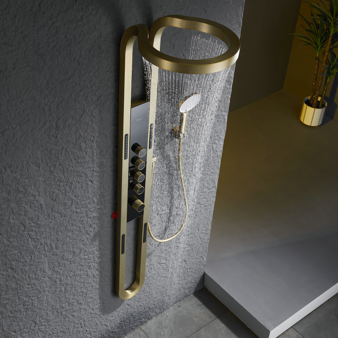 Thermostatisch Douchepaneel Marcelo – Digitale Display - Brushed gold