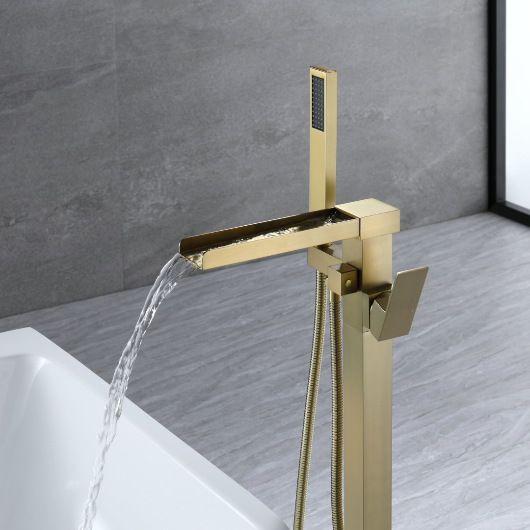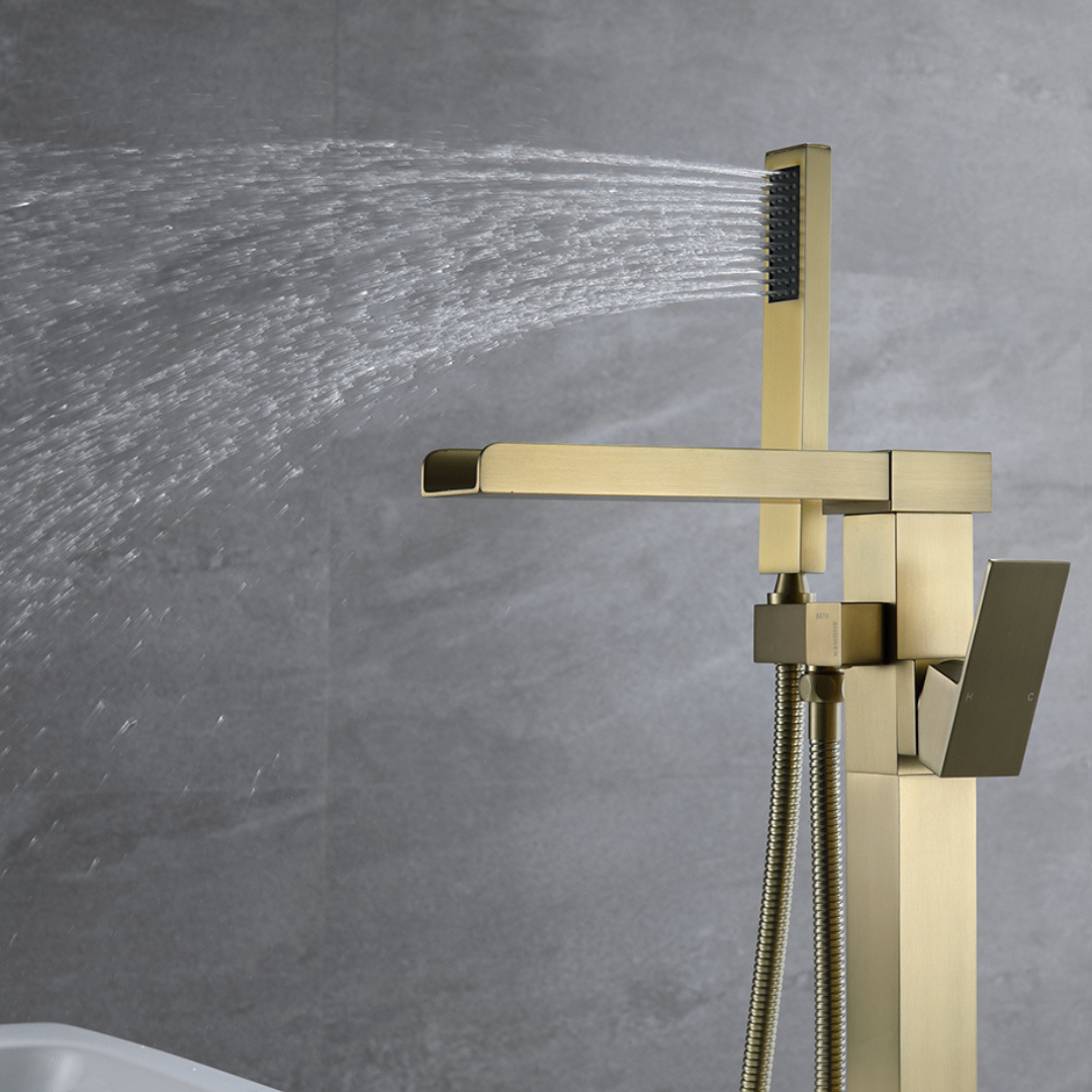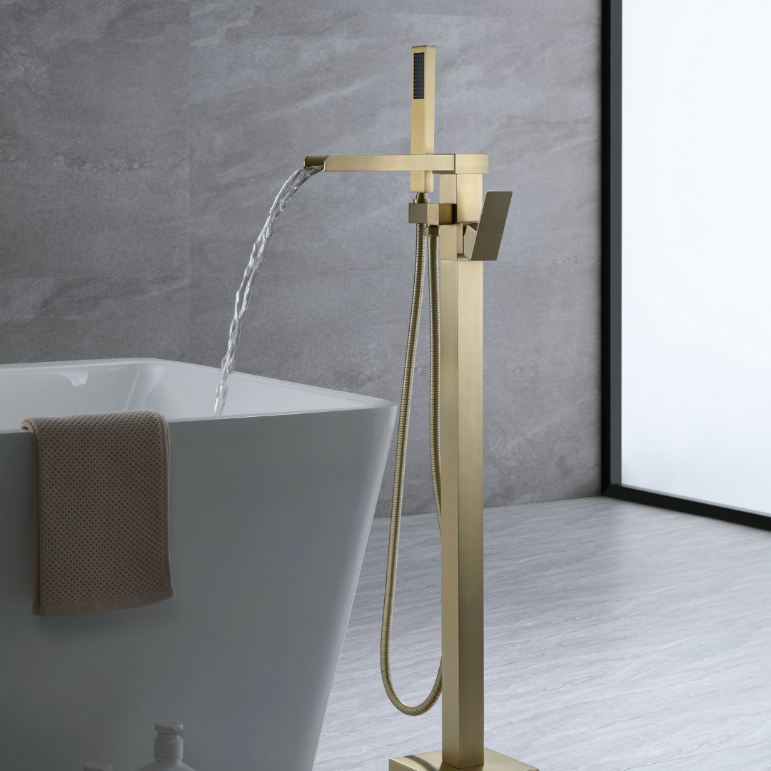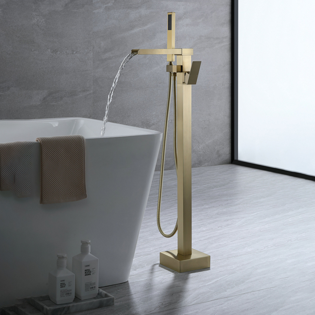 Vrijstaande Badkraan Lisandro – Watervaluitloop – Brushed Gold